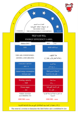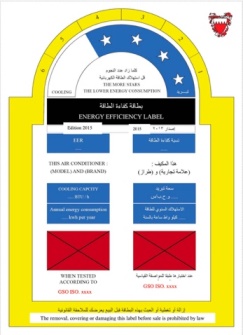 自2015起,容量小于或等于70,000Btu/h(20kW)的空调器产品,在进入巴林王国市场时强制要求申请能效注册并加贴能效标签。